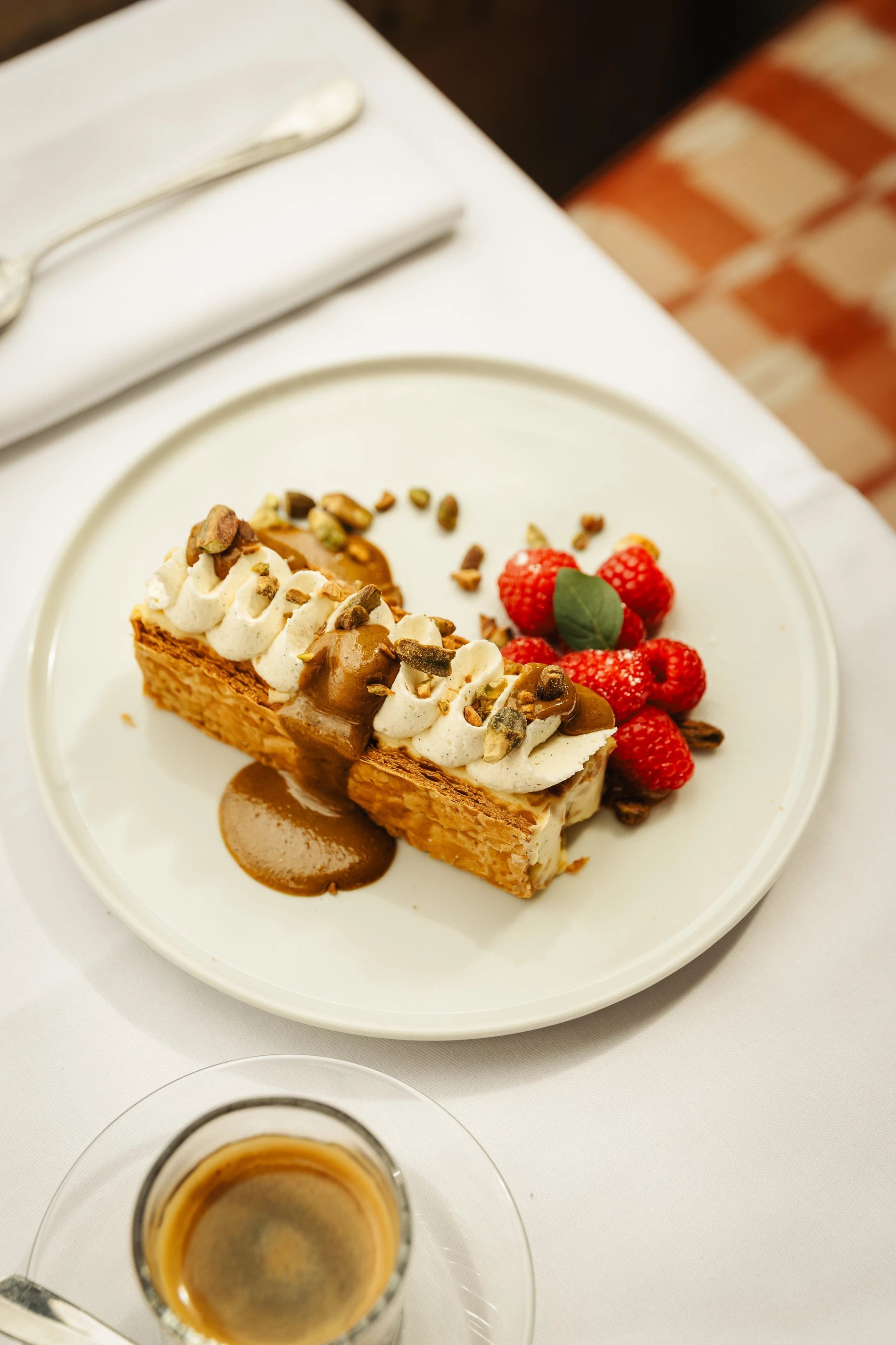 Au déjeuner autant qu’au dîner, on succombe au plaisir de s’attabler autour de belles pièces de viandes et poissons magnifiquement exécutées, ou pasta al dente qui promettent la Méditerranée comme on en rêve. Paccheri au loup de mer & tomate, poulpe grillé aux agrumes, daurade capres & citron...l’heure peut tourner, tout est oublié !